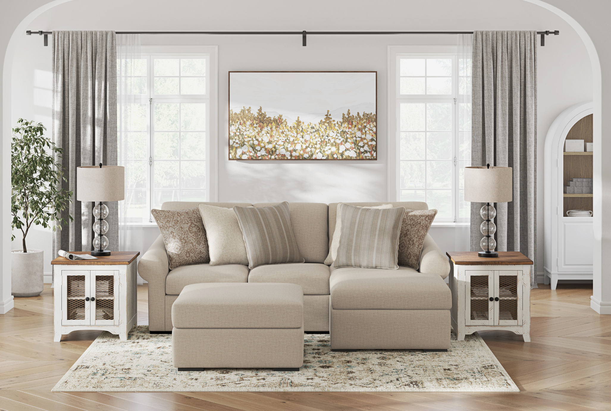 Its modular layout lets you customize the configuration to suit your space, and spills are no stress—just remove the zippered Next-Gen Nuvella™ covers and toss them in the wash. Classic roll arms add timeless style, while low-profile legs bring in a modern edge. Durable, stylish and endlessly adaptable… what’s not to love?