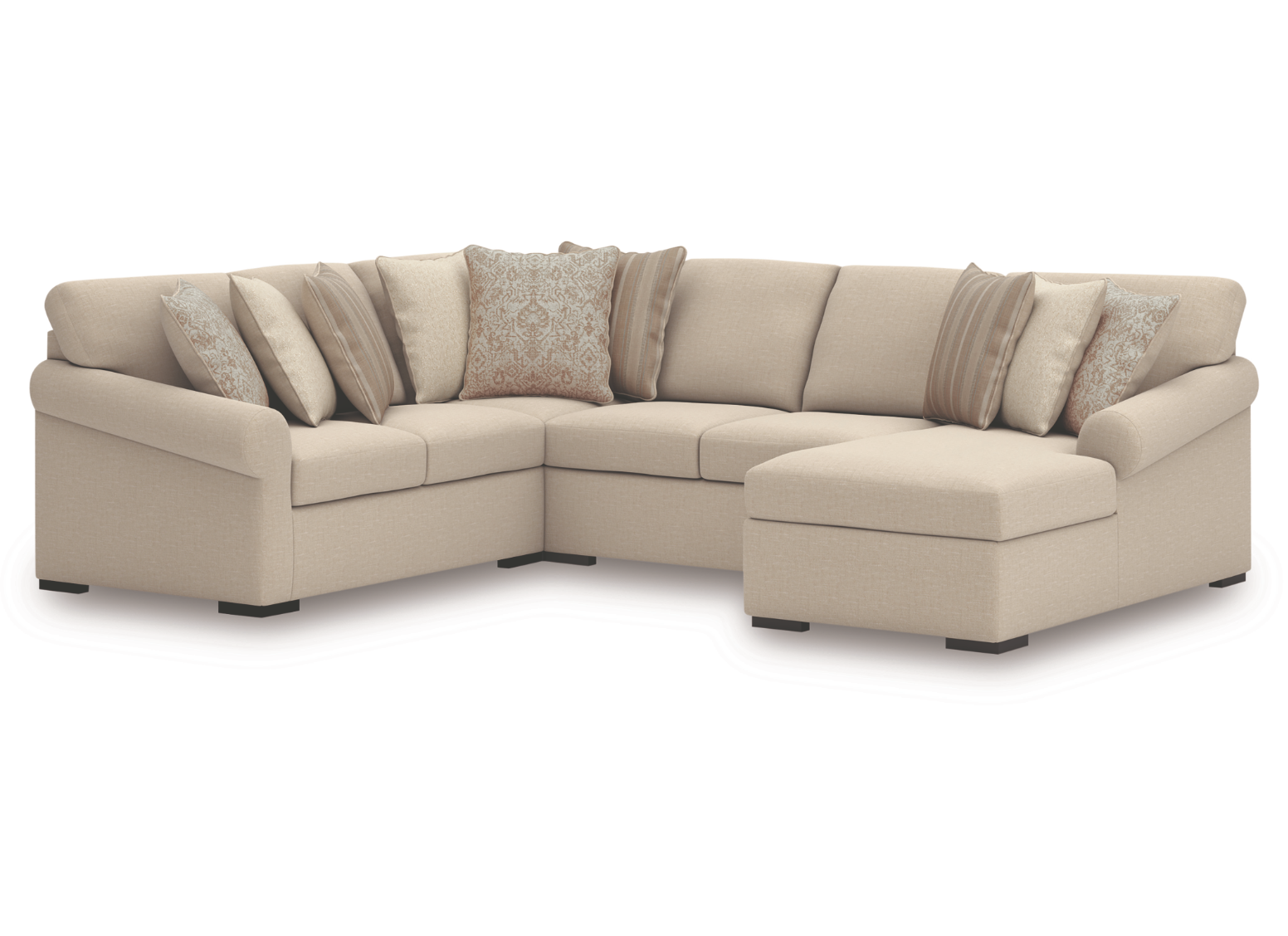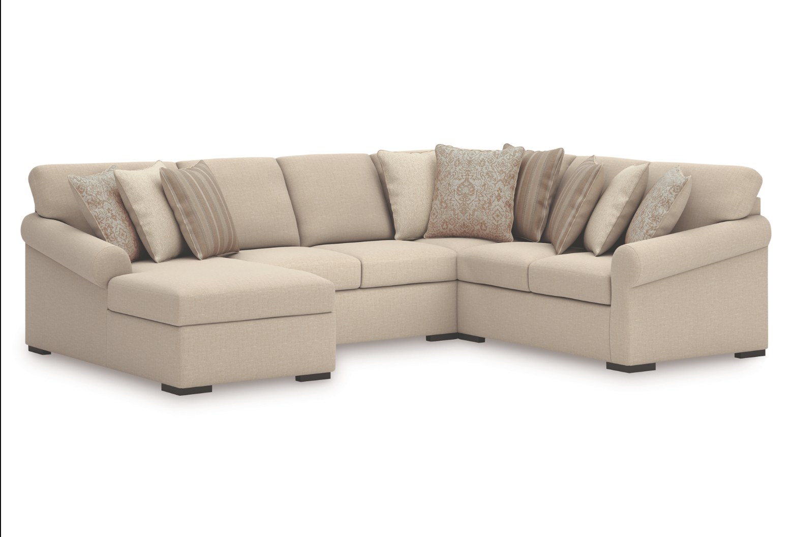 Smooth platform foundation keeps the sectional looking tight and wrinkle-free, helping to prevent dips or sags common with sinuous spring systems