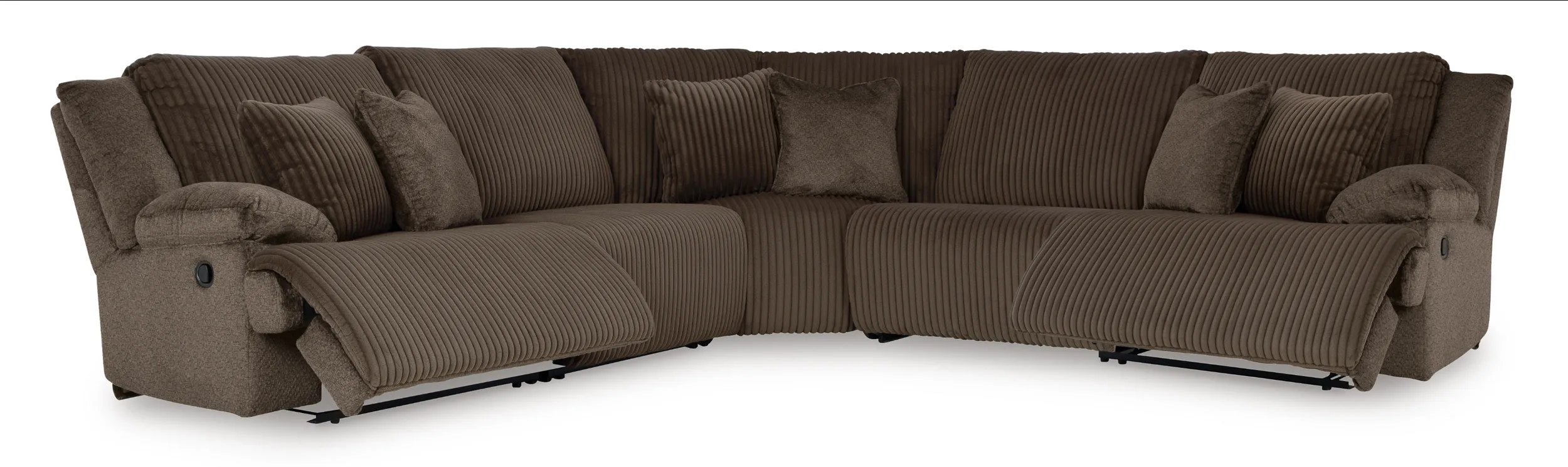 - 5-piece set: left-arm facing recliner, armless recliner, armless chair, wedge, and right-arm facing recliner