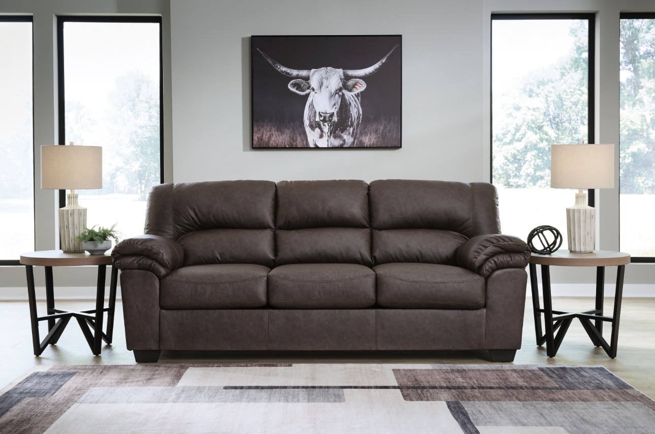 With ultra-soft yet durable cushions and standout jumbo stitching, this stylish sofa brings a comfortably cool, contemporary feel to any space. Its faux leather upholstery delivers an upscale look and texture that impresses like the real thing.